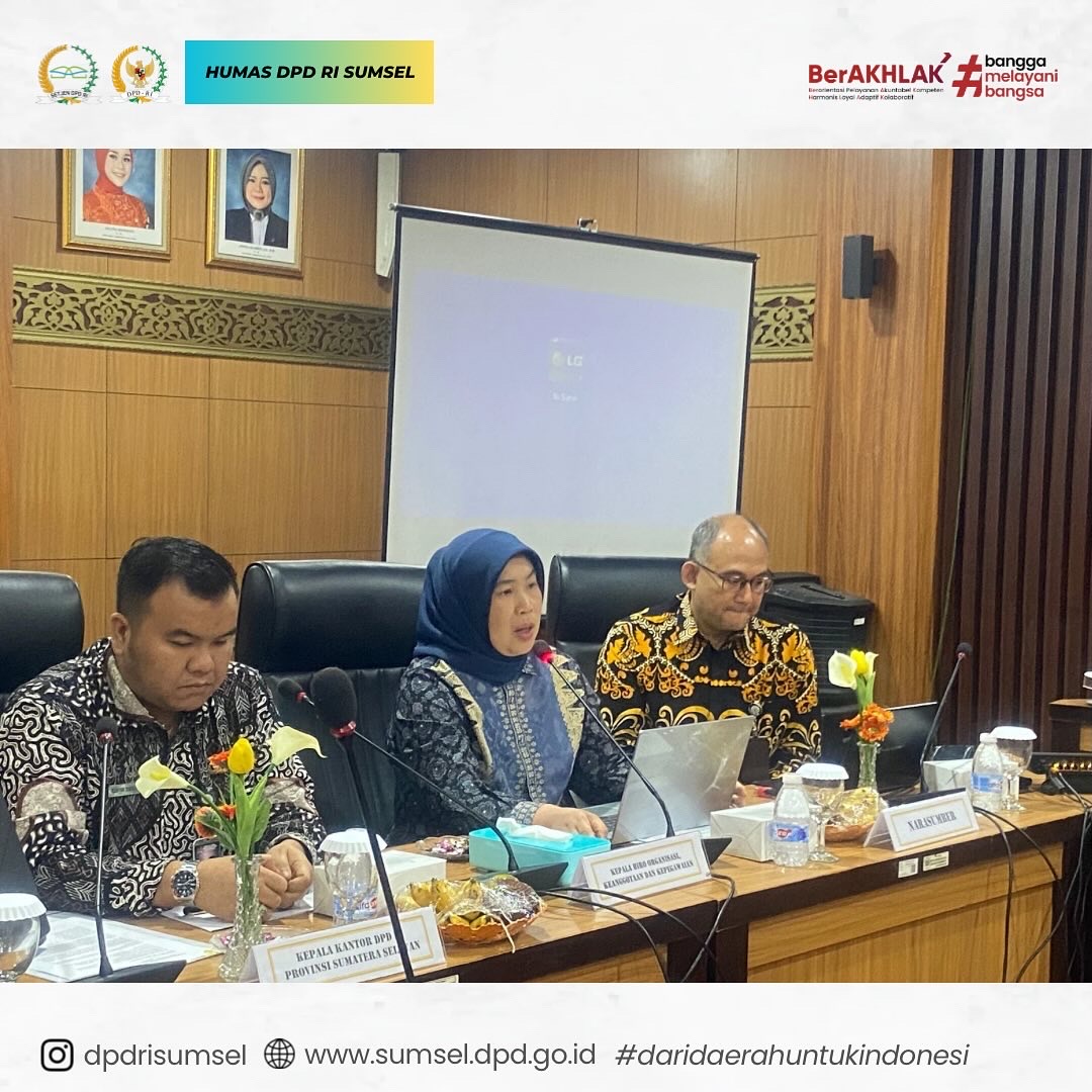 Dalam rangka Pembangunan Zona Integritas Setjen DPD RI. Dr. Fitriani, AP.,M.Si Pimpin langsung Diskusi Bersama KemanPAN RB, kegiatan ini bertempat di Aula Gedung Serba Guna Kantor Sekretariat Jenderal DPD RI Provinsi Sumatera Selatan, Jumat 26 Juli 204.
