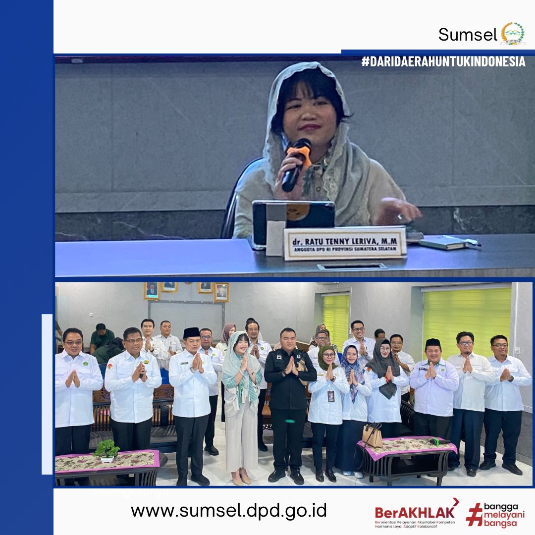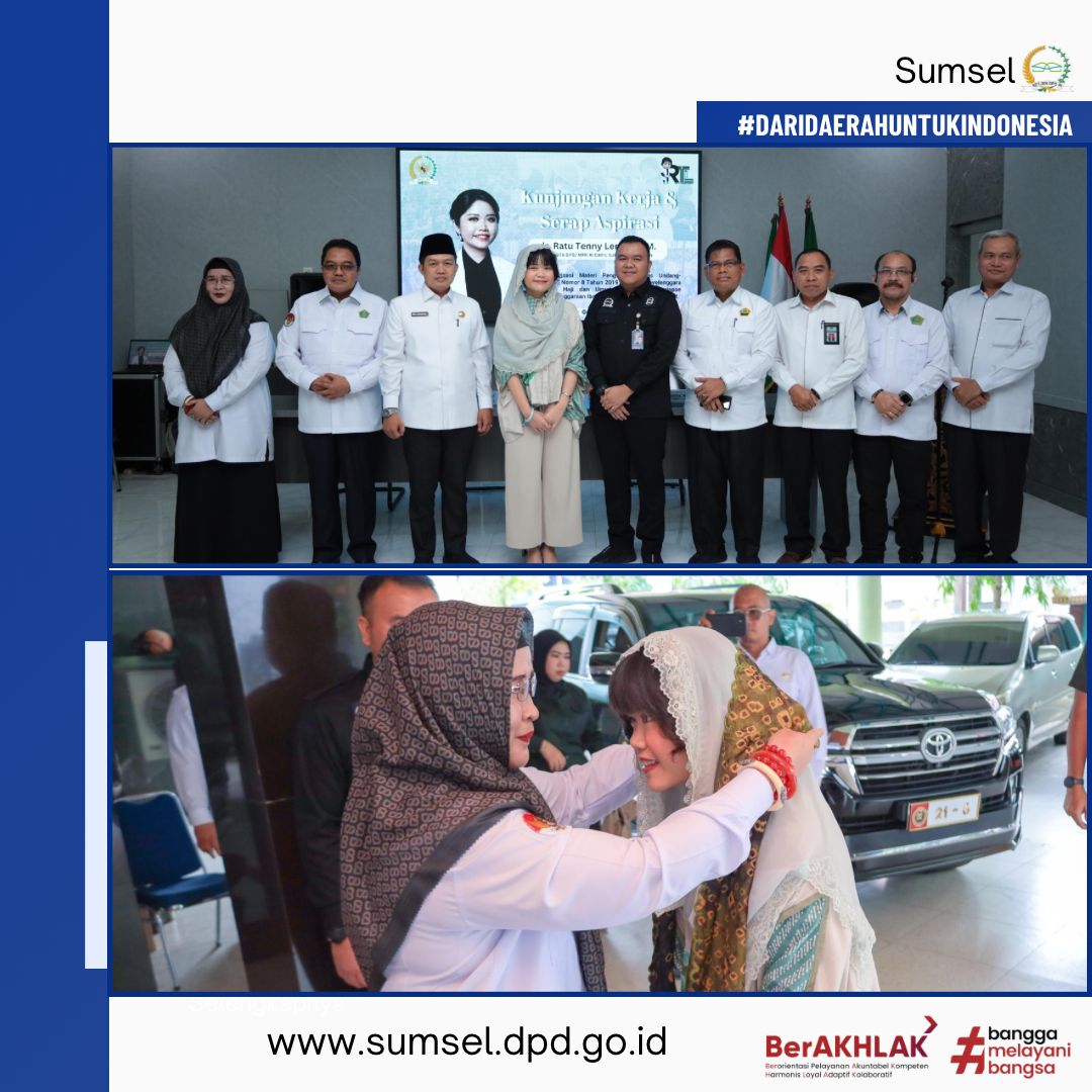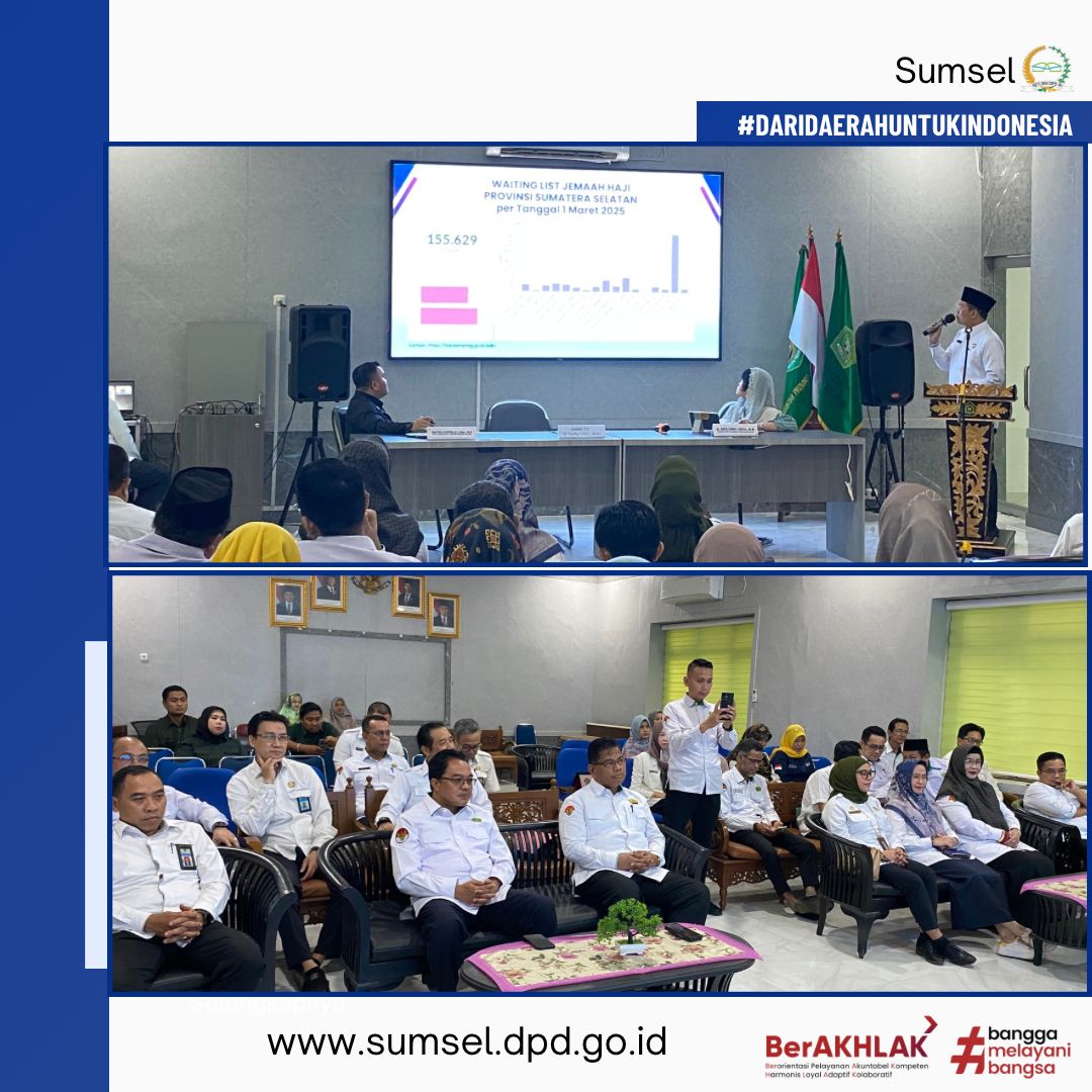 Guna memastikan persiapan penyelenggaraan ibadah haji tahun 2025 terselenggara dengan baik, Anggota Komite III DPD RI dr. Ratu Tenny Leriva, M.M kunjungi Kantor Wilayah Kementerian Agama Provinsi Sumatera Selatan, Selasa, 25 Maret 2025.